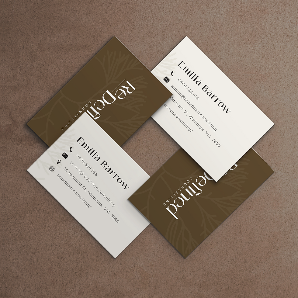 Emilia's requests for her brand was to incorporate a tree/brain icon and have a muted, calming colour palette.